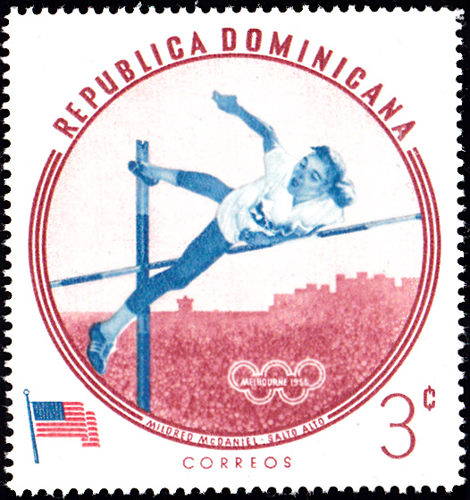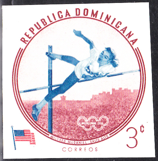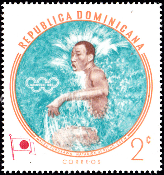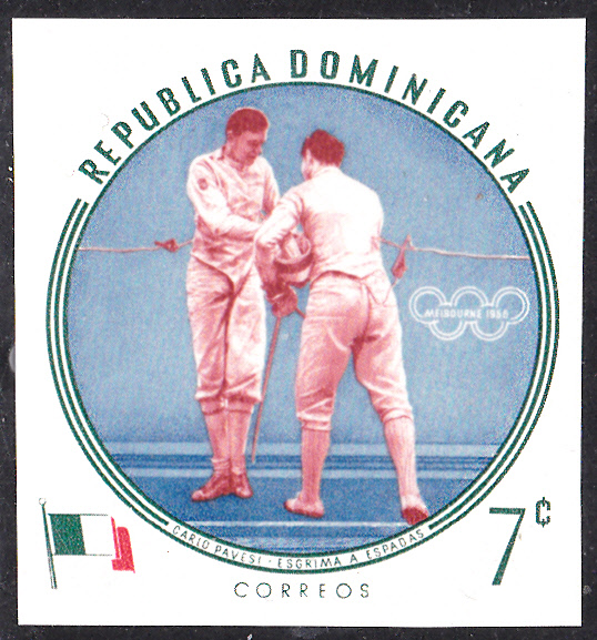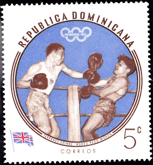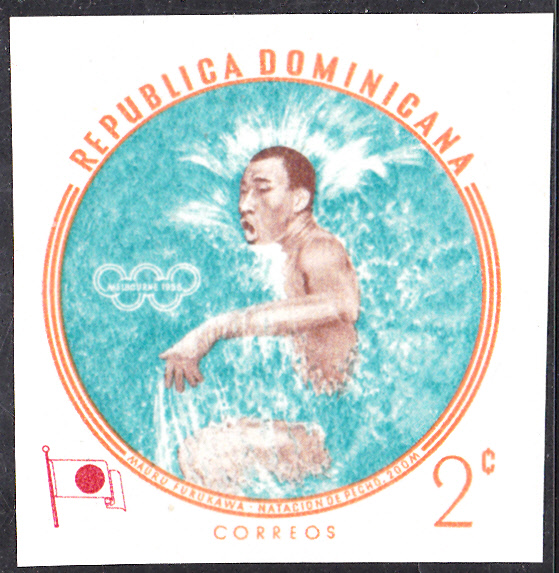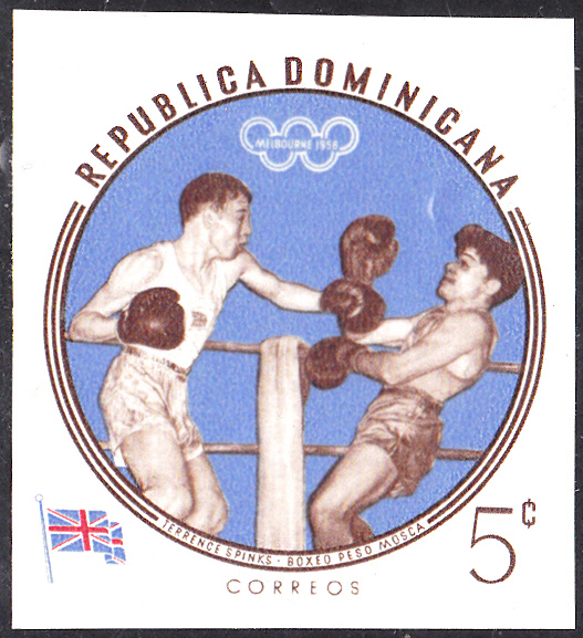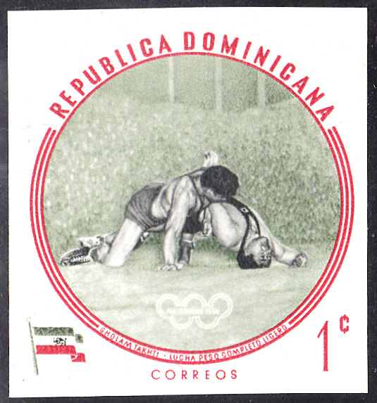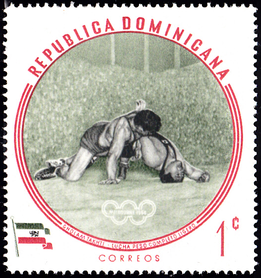 1960 erschien in der Dominikanischen Republik in einer weiteren Serie mit Olympiasieger bei den Sommerspielen in Melbourne diese Marke (MiNr 724 A) mit Gholamreza Takhti.