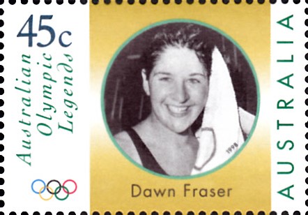 Dawn Lorraine Fraser (geb. 4. Sep. 1937 in Balmain, New South Wales) ist eine ehemalige australische Schwimmerin. In Melbourne hat sie Gold über 100m Freistil und mit der 4x100m Freistilstaffel sowie Silber über 400m Freistil. 1960 erreichte sie über 100m Freistil Gold und Silber mit der 4x100m Freistilstaffel und mit der 4x100m Lagenstaffel. Auch 1964 in Rom hat sie erneut über 100m Freistil Gold und mit der 4x100m Freistilstaffel Silber gewonnen.