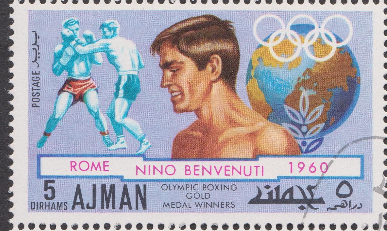 Diese am 27.09.1971 ausgegebene Briefmarke, Ajman MiNr. 1056, ehrt diesen Olympiasieg: