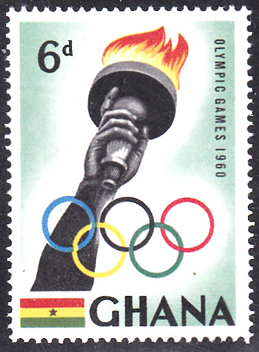 Aus Ghana waren in Rom 13 Teilnehmer/innen vertreten und belegte mit einer Silbermedaille im Medaillenspiegel den 32.Platz. In Ghana sind in einer Serie zwei bildgleiche Marken mit der Abbildung einer Hand mit der Olympischen Fackel und den Olympischen Ringen erschienen.