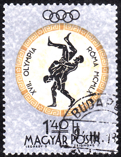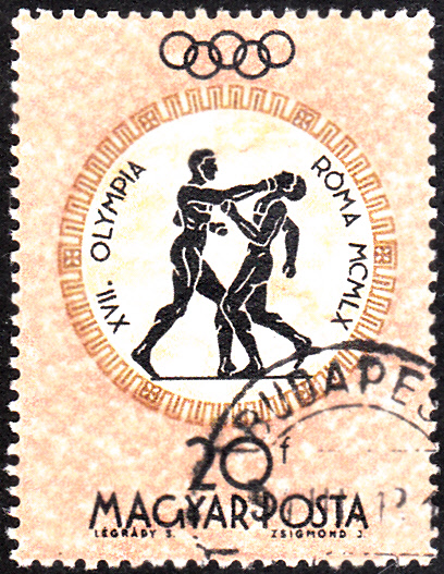Zu den Spielen erschien in Ungarn eine Serie mit Darstellungen zu antiken Sportarten. Hier die Marke zu 20 Filler (MiNr 1687 A) mit dem Motiv Boxen.