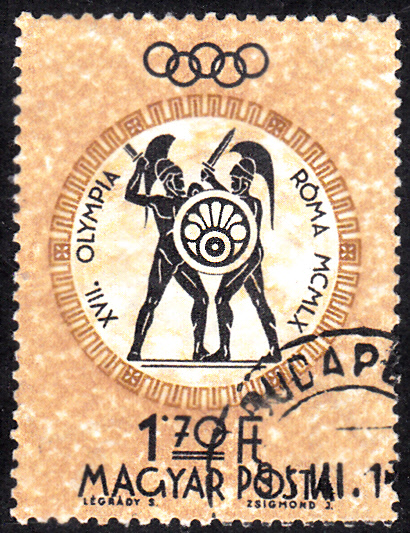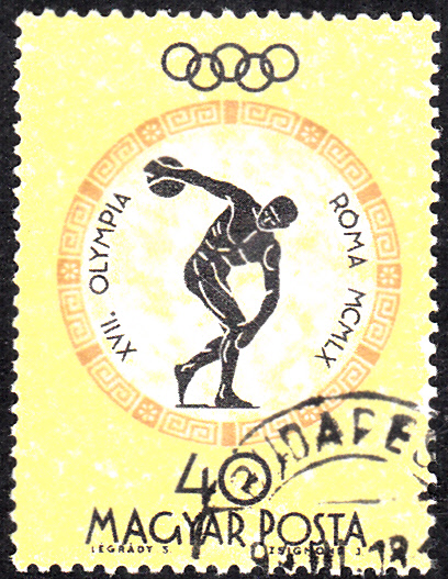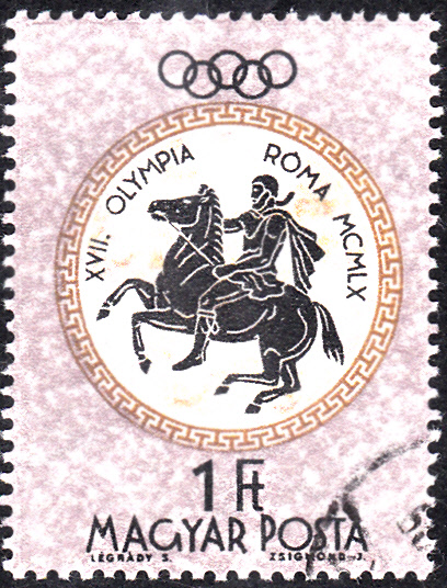 Hier folgt der Wert zu 1 Forint (MiNr 1962 A) aus der Serie zu den Sommerspielen 1960 mit der Abbildung eines Reiter-Reliefs aus dem Westfries des Parthenon.