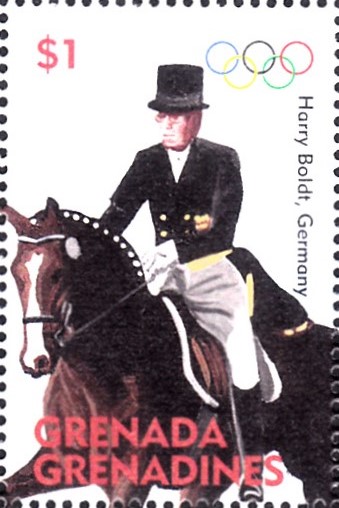 Diese Marke aus Grenada/Grenadinen (MiNr 2290) zeigt den hier bereits vorgestellten Dressurreiter Josef Neckermann.