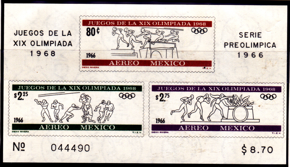 Die dritte vorolympische Serie zu den Spielen 1968 erschien in Mexico am 12. Oktober 1967. Die Marken zeigen wiederum Sportarten. Der erste Wert der Serie (MiNr 1236) zeigt die Sportart Zweier-Kajak.
