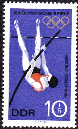 Die Marke zu 10+5Pf (MiNr 1405) zeigt einen Stabhochspringer.