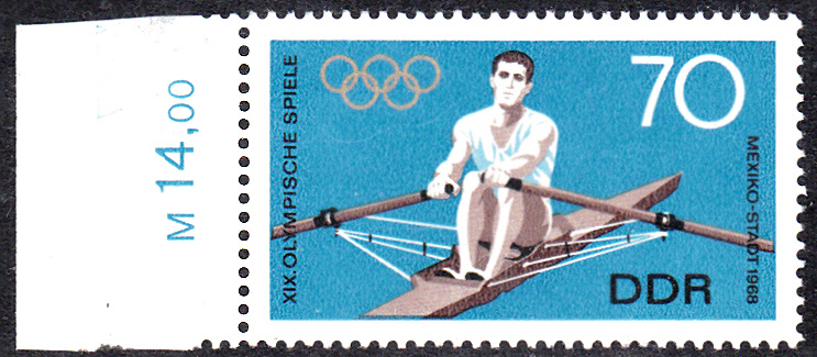Und hier der letzte Wert dieser Serie (MiNr 1409) mit einem Einer beim Rudern.
