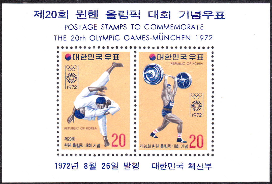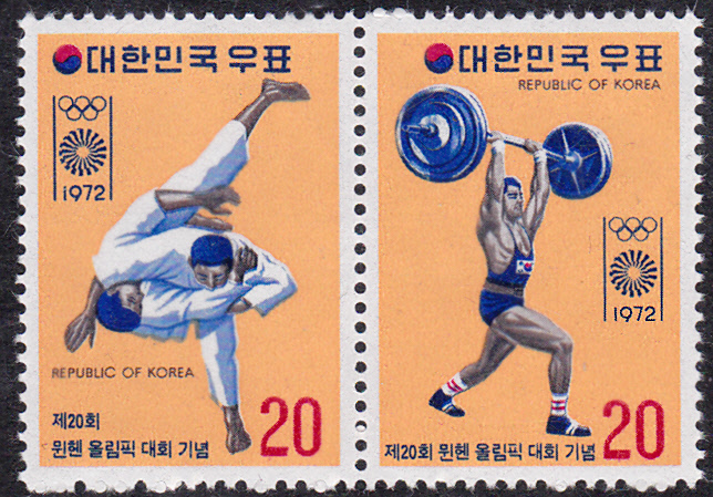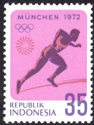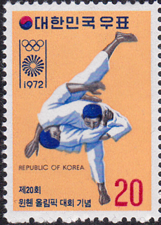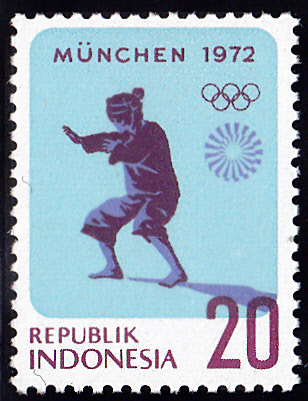 In Indonesien ist auch eine Markenserie zu den Sommerspielen 1972 erschienen. Hier eine Marke der Serie (MiNr 711) mit der Abbildung eines Judoka.