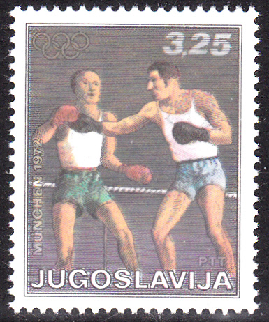 Auf der Marke zu 3.25 Dinar (MiNr 1454) werden zwei Boxer beim Kampf gezeigt.