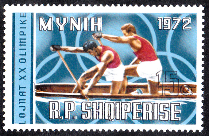 Bereits 1971 war eine weitere Markenserie zu den Olympischen Spielen 1972 in ALbanien erschgienen. Hier der erste Wert dieser Serie (MiNr 1499) mit einem Sprinter beim Start.