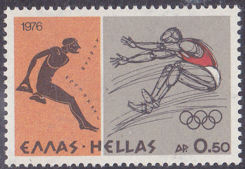 In Griechenland erschien in einer Serie zu den Sommerspielen 1976 diese Marke (MiNr 1240) zum Thema Weitsprung mit einer antiken und einer "modernen" Darstellung.
