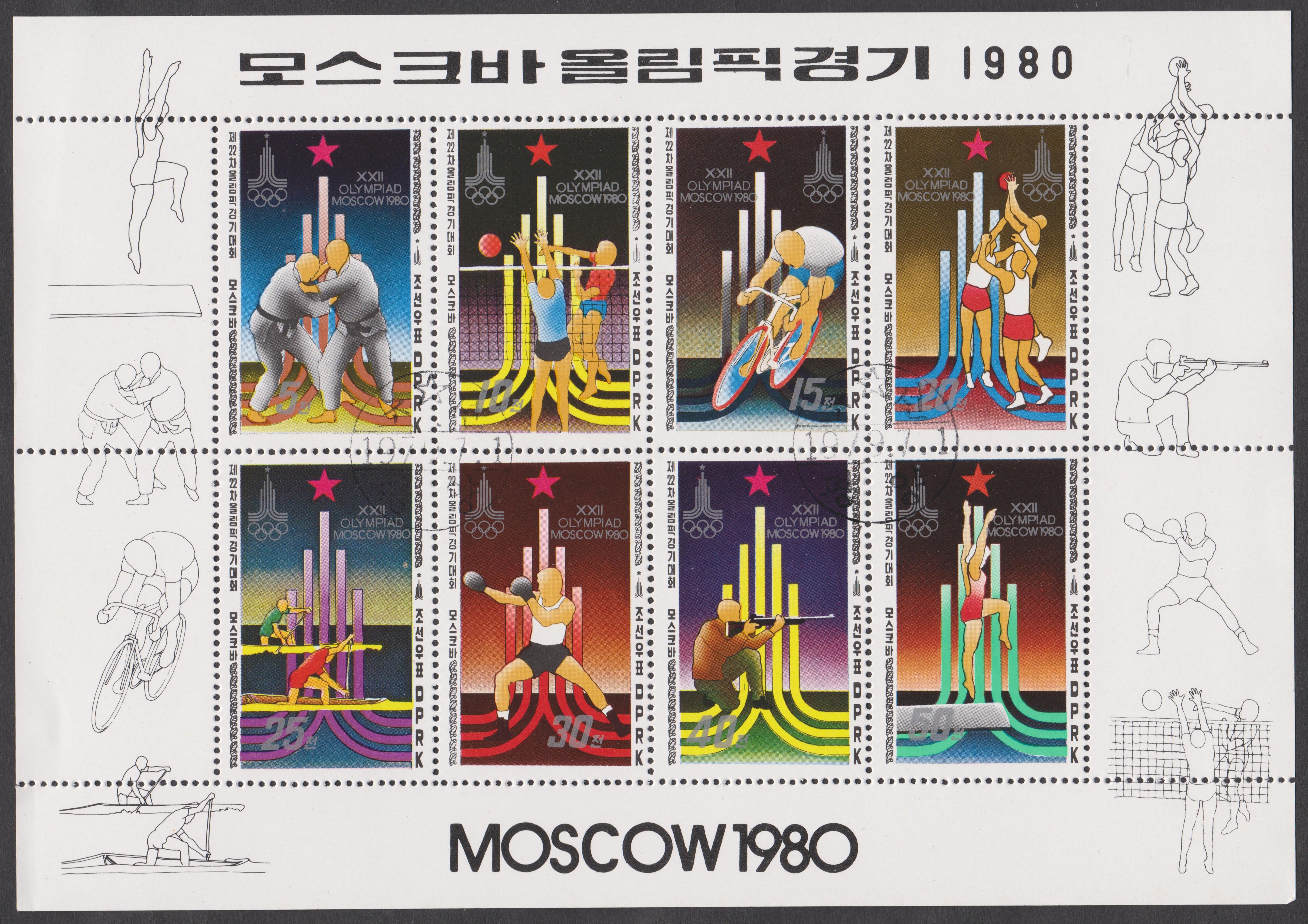 Nordkorea MiNr 1881 bis 1888 erschienen am 05.08.1979 zusammenhängend im Kleinbogen gedruckt: