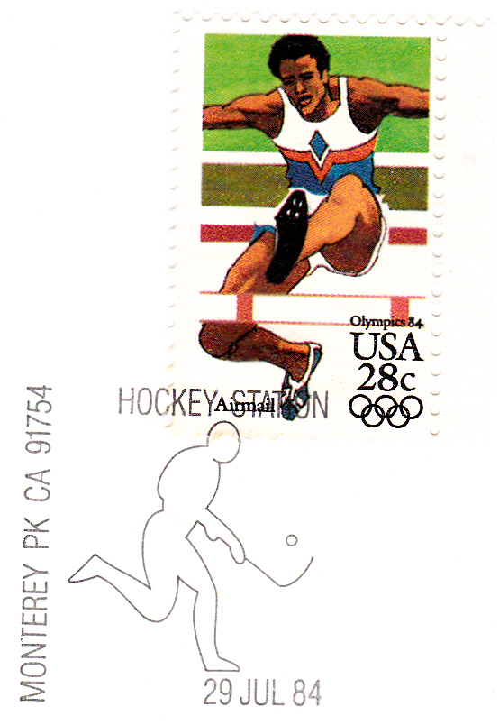 Sonderstempel vom 29.7.1984 aus Montery Park zum den Olympischen Hockey-Turnieren.