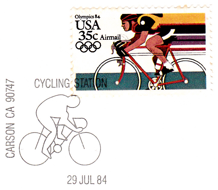 Sonderstempel aus Carson vom 29.7.1984 zu den Wettbewerben zum Bahnfahren.