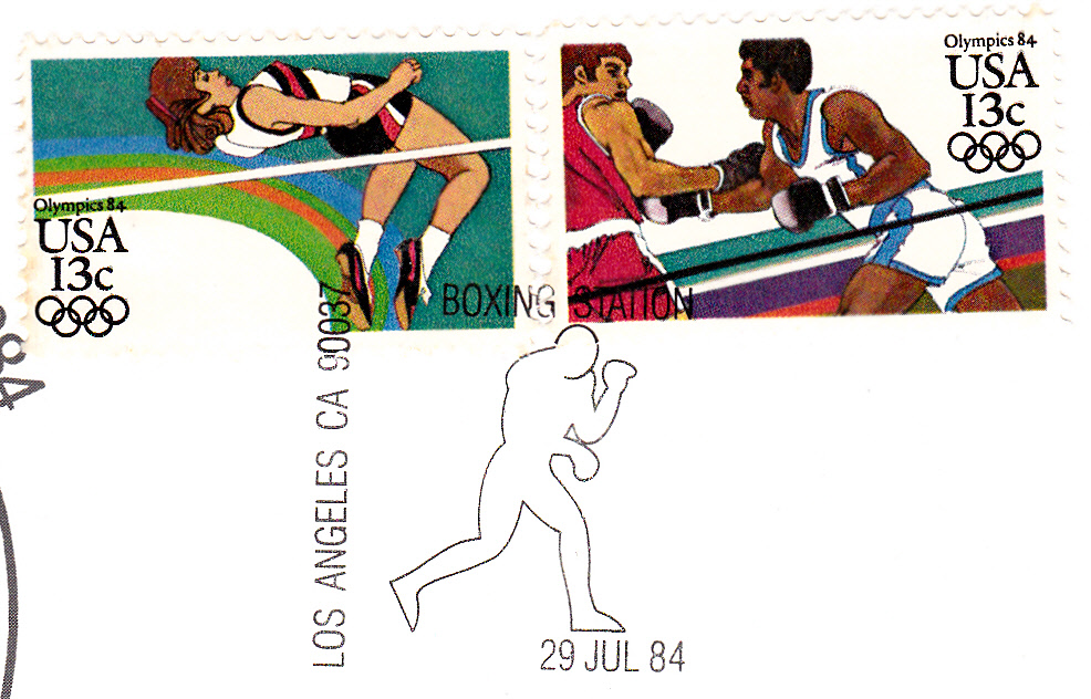 Sonderstempel vom 29.7.1984 aus Los Angeles zu den Boxwettkämpfen.