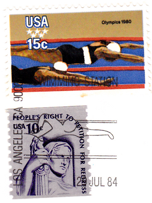 Sonderstempel vom 29.7.1984 aus Los Angeles von den Wettbewerben im Schwimmen