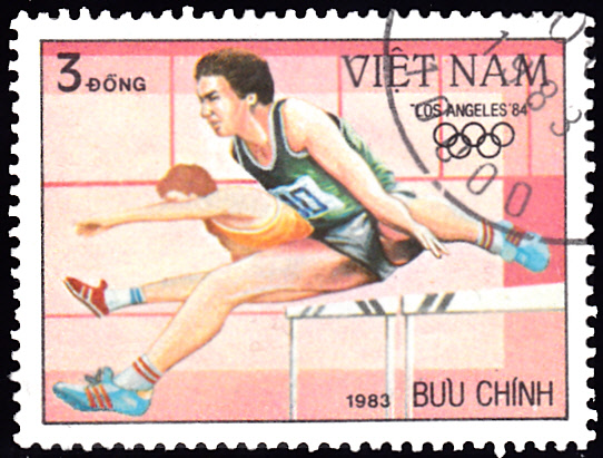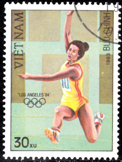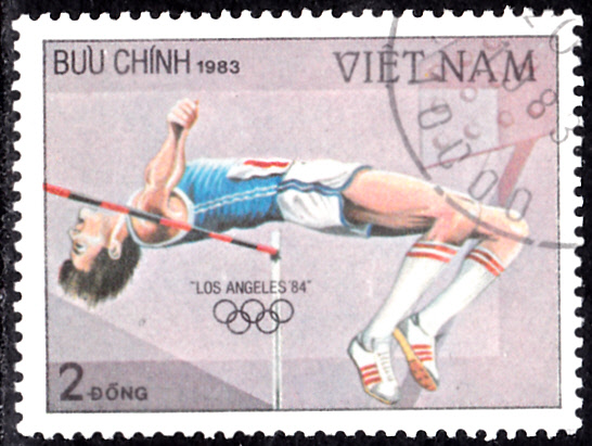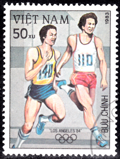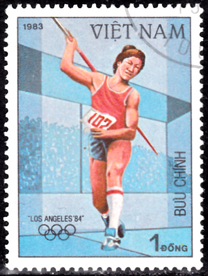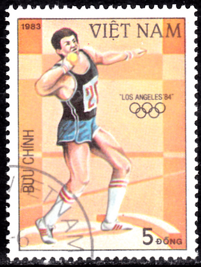 Diese Marke aus Vietnam (MiNr C 1451) zu den Sommerspielen in Los Angeles 1984 zeigt eine Szene beim Ringen.