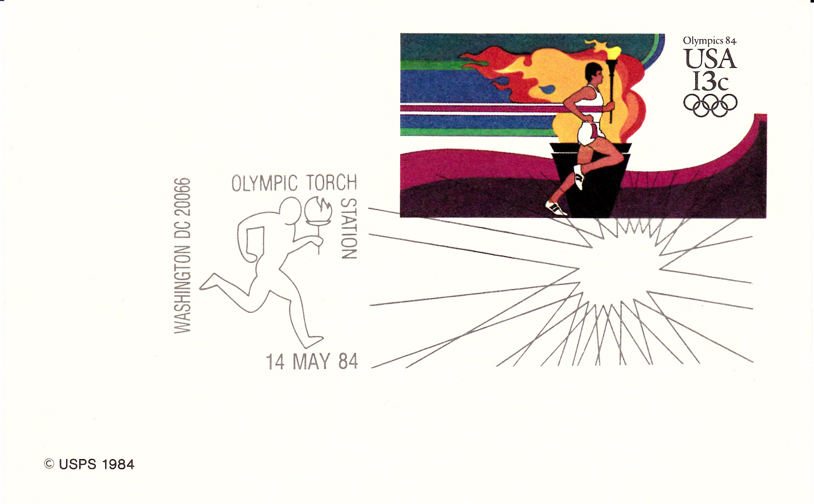 Am 14.5.1984 verlief der Fackellauf durch Washington, wie uns dieser Sonderstempel nachweist.