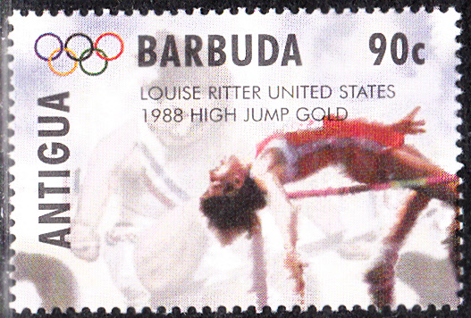 Auf dieser Marke (MiNr 2144) aus der gleichen in Antigua Barbuda erschienenen Serie zu den Olympischen Sommerspielen 1996 in Atlanta mit Goldmedaillengewinner früherer Spiele ist Louise Ritter zu sehen.
