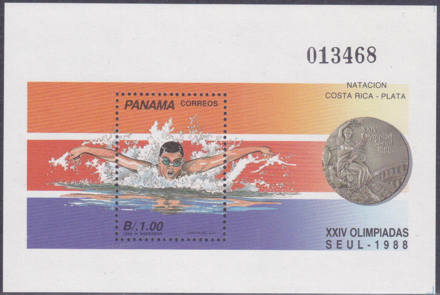 Eine Marke aus Panama (MiNr 1684) belegt die Silbermedaille 1988 ohne dass sein Name genannt wird.