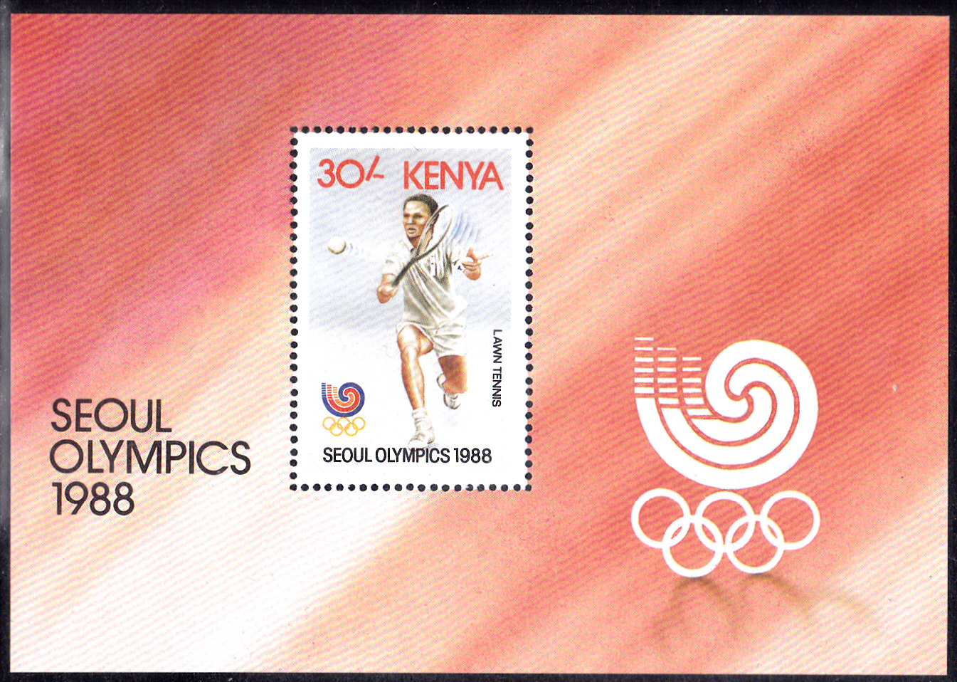 Zur Ausgabe aus Kenia gehört auch ein Block (MiNr Block 34 mit Marke MiNr 452). Die Marke zeigt einen Tennisspieler.