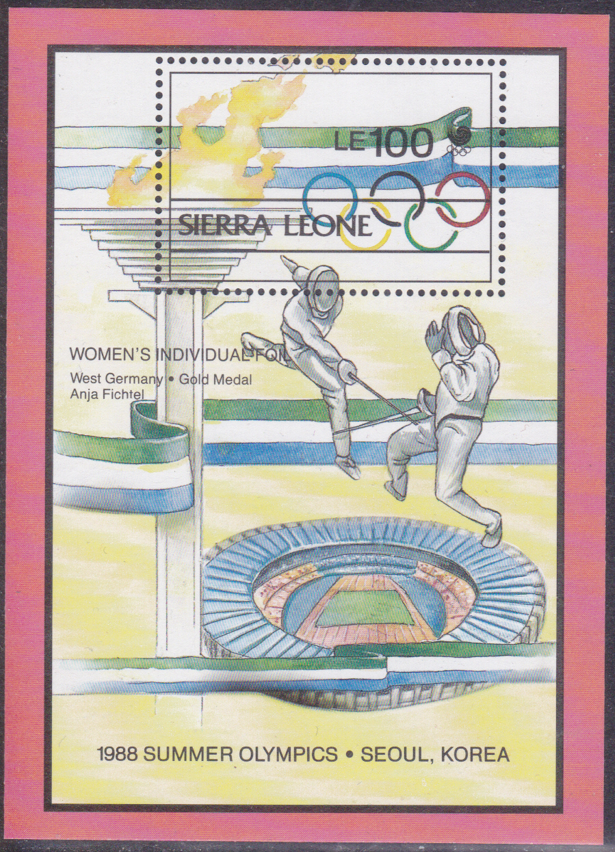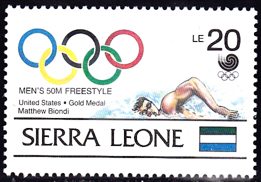 Zu der Gold-Medaille über 50 m Freistil in Seoul ist in Sierra Leone diese Marke (MiNr 1168) erschienen.