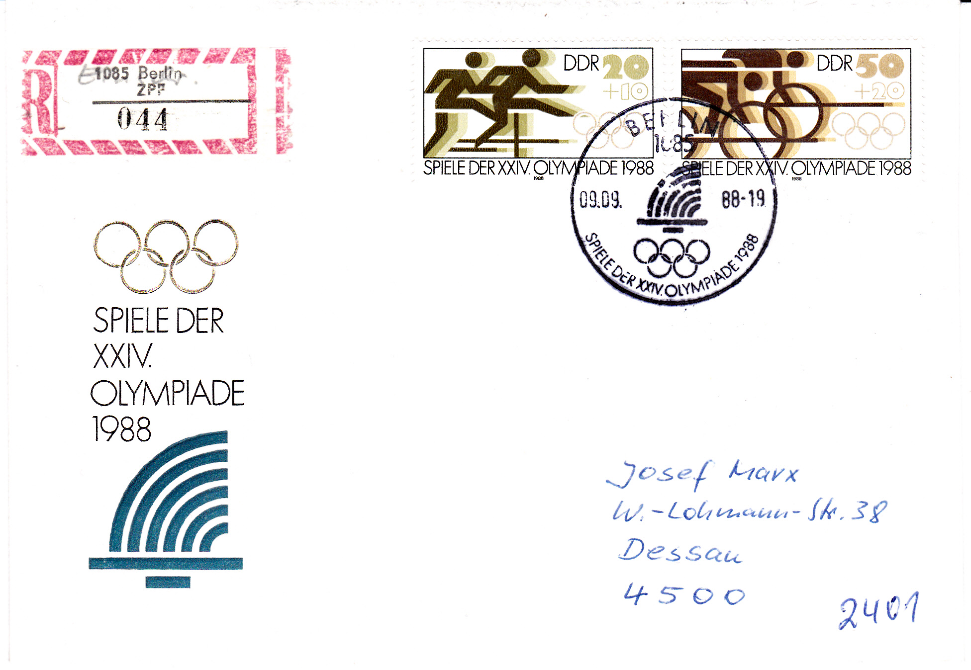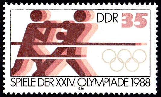 Zu den Olympischen Sommerspielen in Seoul erschien in der DDR am 9. August eine Serie mit 6 Marken und einem Block.