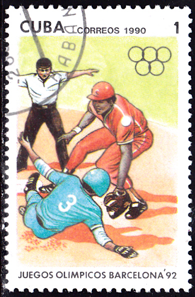 In einer Serie aus Kuba ist diese Marke (MiNr 3363) mit einer Spielszene beim Baseball erschienen.