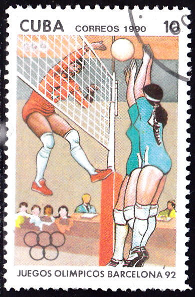 Eine weitere Marke der Serie aus Kuba (MiNr 3366) zeigt eine Szene beim Volleyball der Frauen.