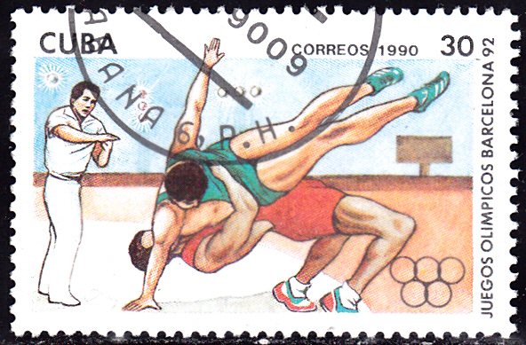 Aus der Serie aus Kuba kann ich noch eine Marke (MiNr 3367) mit einer Kampfszene beim Ringen.