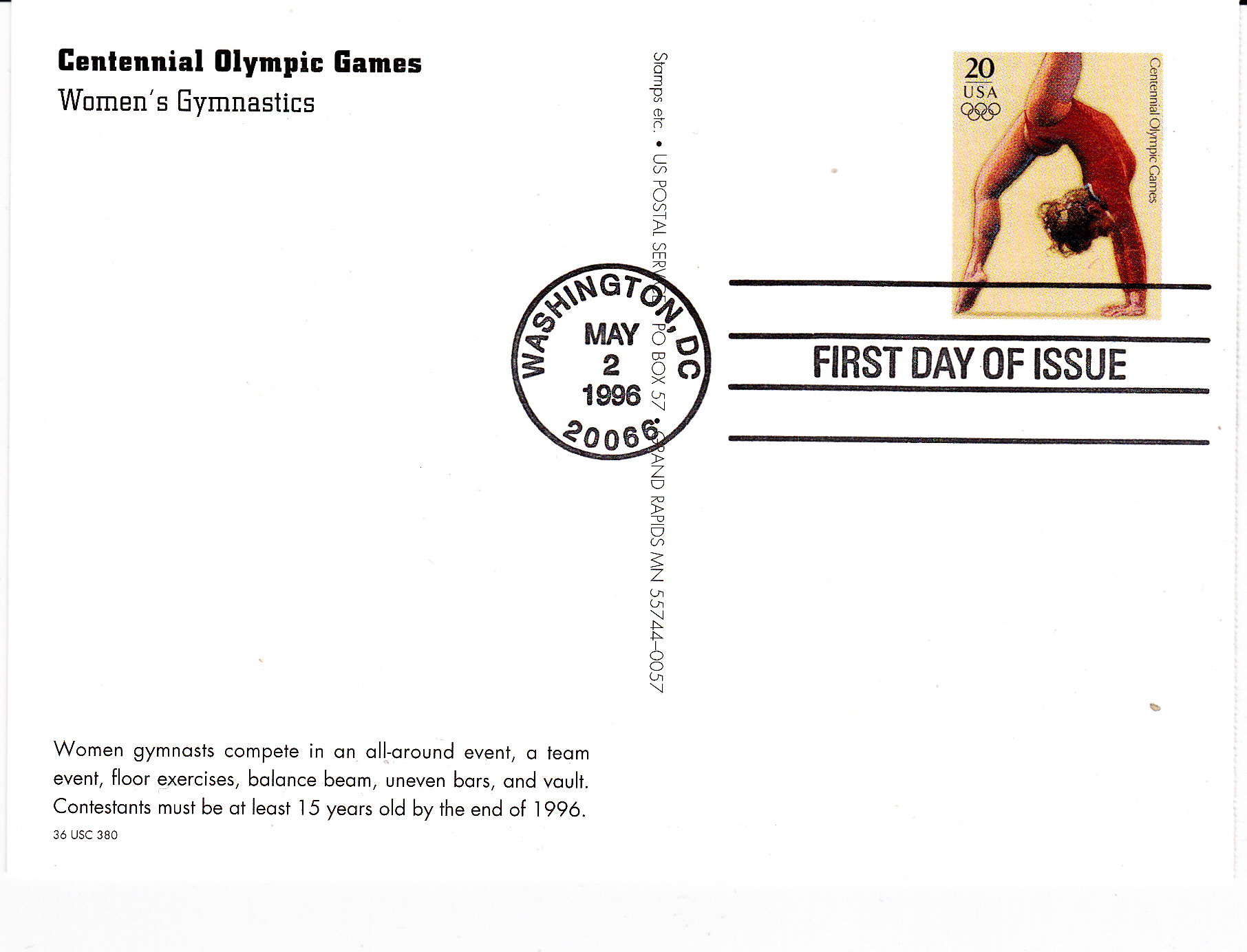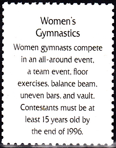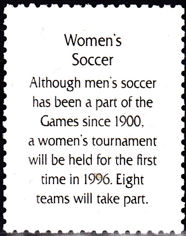 Der rückseitige Text weist auf die erstmalige Durchführung eines Frauenfußballturniers bei den Olympischen Spielen 1996 hin.