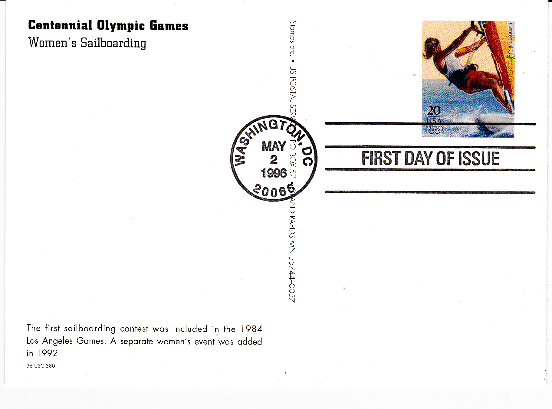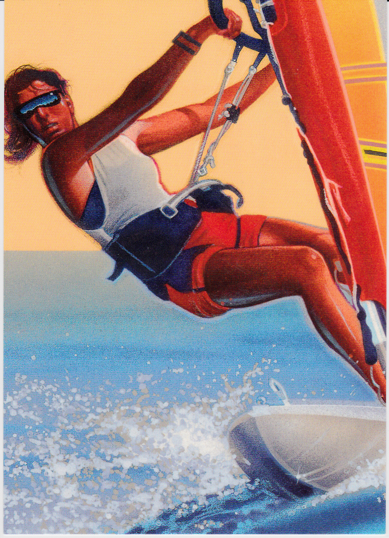 Rückseitig sind Informationen zum Windsurfen bei Olympia zu lesen: