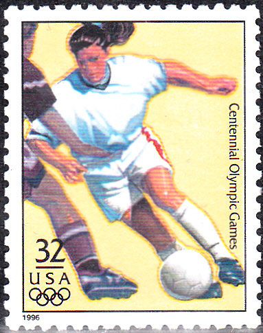 Diese Marke aus der Serie aus den USA (MiNr 2714) zeigt eine Fußballspielerin.