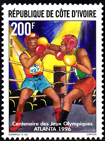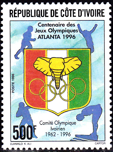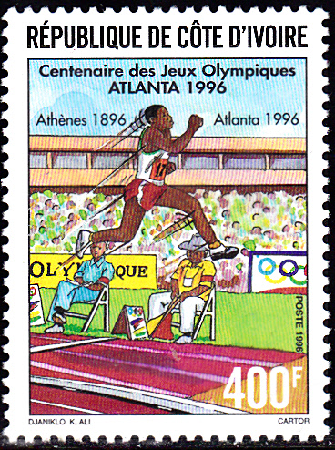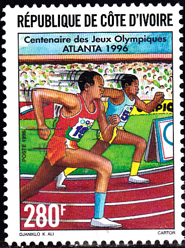 Am 19. Juli 1996 gab es in der Elfenbeinküste eine Serie mit vier Marken zum Thema "100 Jahre Olympische Spiele der Neuzeit - Olympische Sommerspiele in Atlanta". Hier stelle ich die ersten zwei Werte vor: