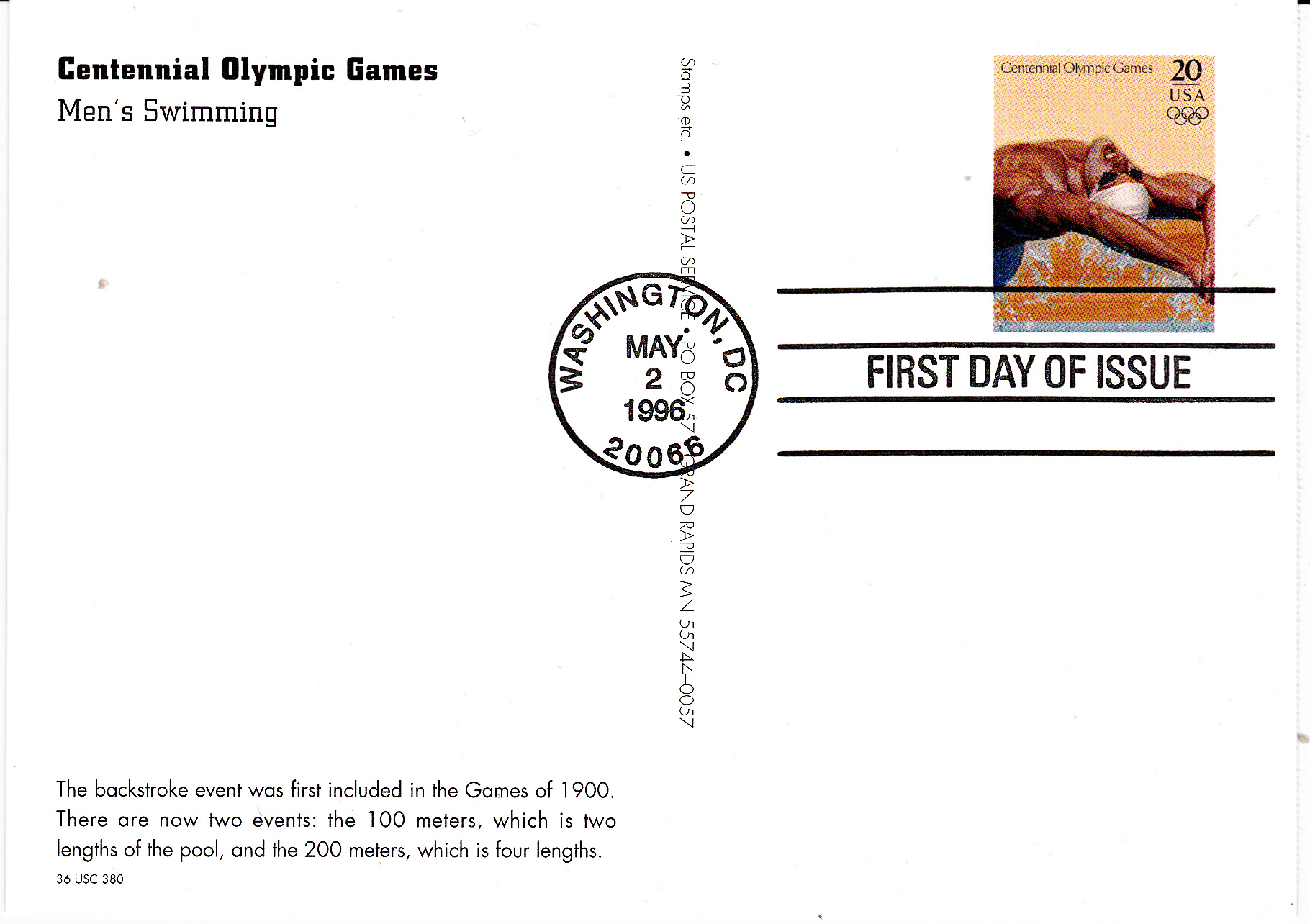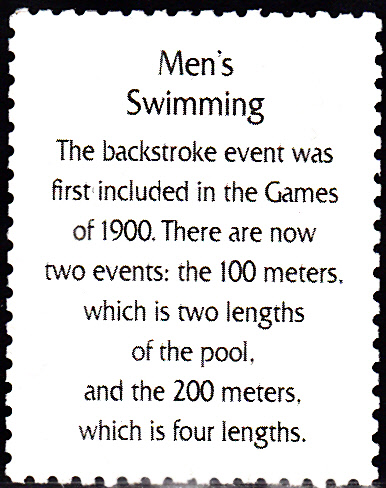Rückseitig wird über die Disziplin Rückenschwimmen der Männer bei Olympia informiert: