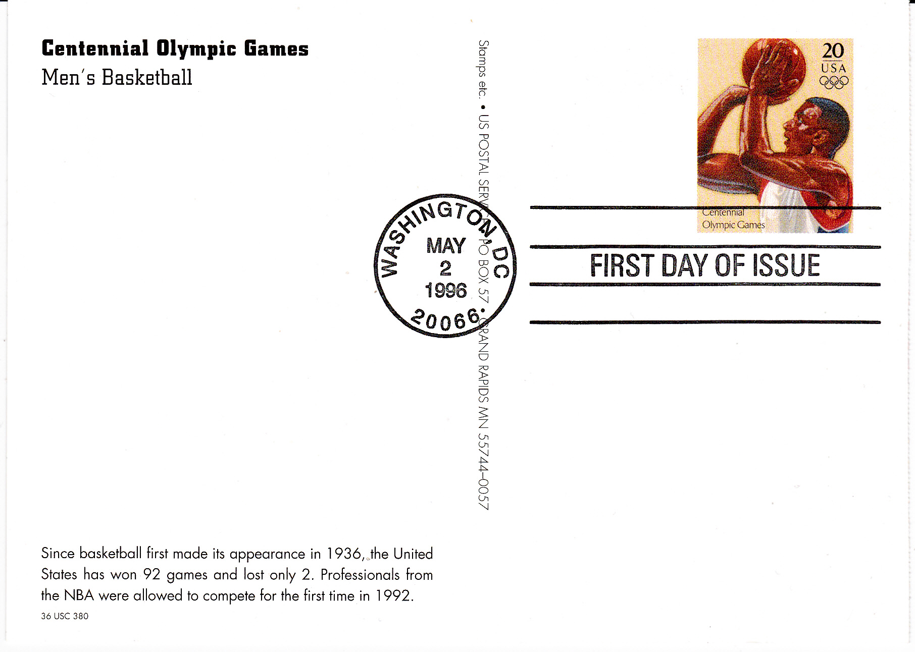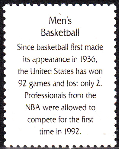 Der Text auf der Rückseite berichtet von den Erfolgen der USA bei den olympischen Basketballturnieren: