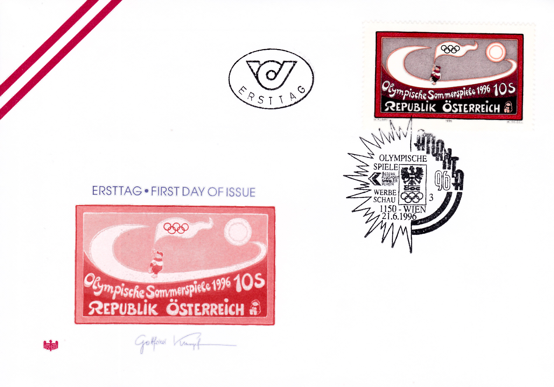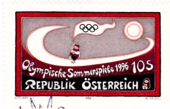 Zu den Sommerspielen 1996 ist in Österreich eine Marke (MiNr 2190) mit einem Bild "Fahnenträger" von Gottfried Kumpf erschienen.