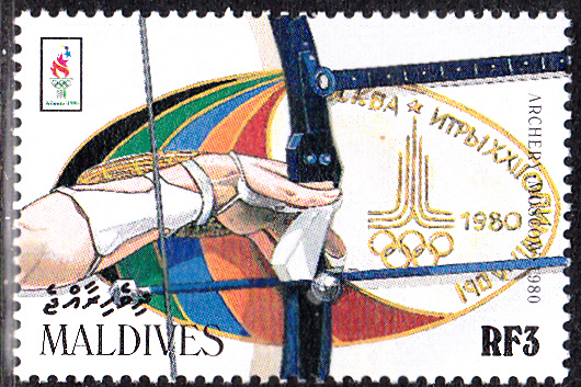 Auf den Malediven erschienen 25. Jan 1996 in einer ersten Ausgabe zu den Olympische Sommerspiele in Atlanta eine Reihe von Marken zur Geschichte der Olympischen Spieler die ersten drei Werte: