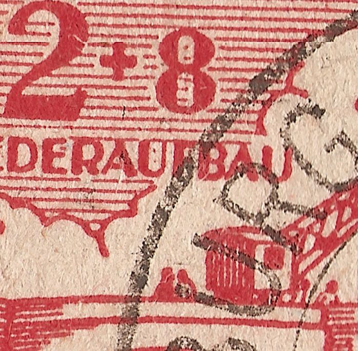 Auf MiNr. 88 befindet sich Plattenfehler VII: "rechter Aufstrich des zweiten "U" von "WIEDERAUFBAU" verkürzt, Schraffurlinie unter "R" gebrochen (Feld 1, 6 [C+D], 51, 56 [D])".