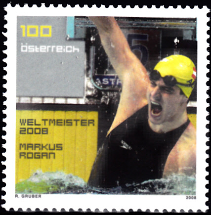 In Österreich ist eine Marke (MiNr 2776) mit der Abbildung von Markus Rogan erschienen. Die Marke verweist auf den Sieg von Markus Rogan über 200m Rücken bei den Kurzbahnweltmeisterschaften 2008 in Manchester.