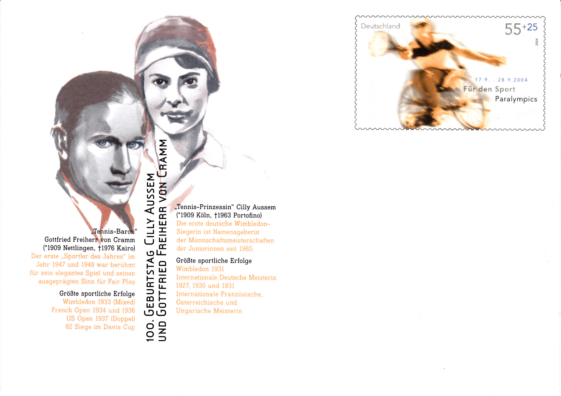 Die Deutsche Post verausgabte zu den Paralympischen Sommerspielen 2004 in der Serie "Für den Sport" eine Marke (MiNr 2384) mit einem Spieler beim Rollstuhltennis.