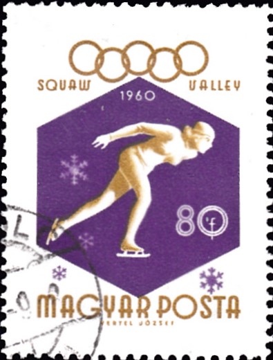 Auf einer Marke aus Ungarn (MiNr 1671 A) zu den Spielen 1960 wird eine Eisschnellläuferin gezeigt.