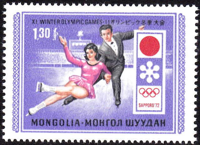 In der Serie aus der Mongolei zu den Spielen in Sapporo zeigt auch eine Marke (MiNr 669) eine Eiskunstläuferin.