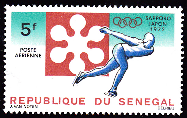 Auch im Senegal gab es in der Serie zu den Winterspielen in Sapporo eine Marke (MiNr 479) mit einem Eisschnellläufer.