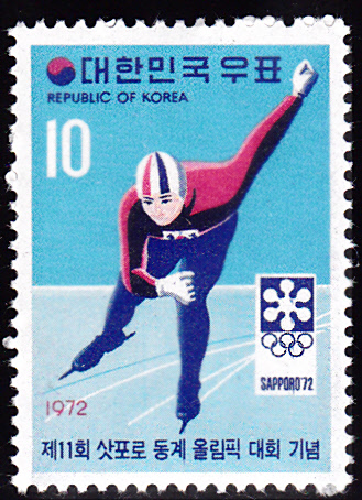 In Korea-Süd erschien zu den Olympischen Winterspielen 1972 diese Marke (MiNr 824) mit einem Eisschnellläufer.