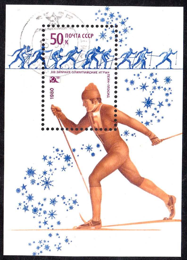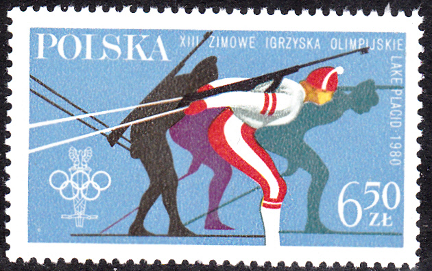 In einer Serie zu den Olympischen Spielen 1980 gab es auch eine Marke (MiNr 2676) mit Biathleten zu den Winterspielen.