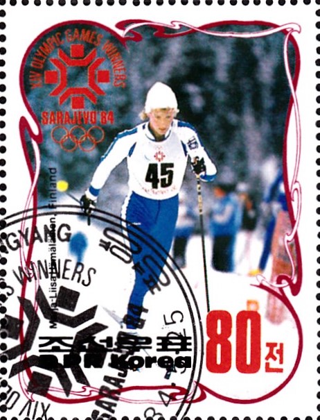 Zu Ihren Siegen in Sarajewo gab es ebenfalls eine Marke aus Nordkorea (MiNr 2461).