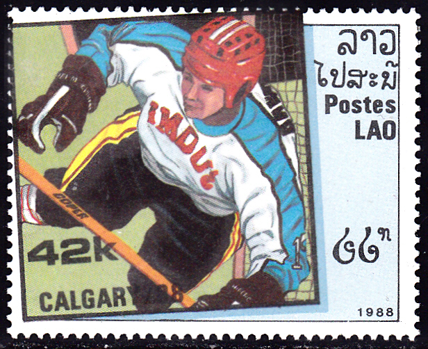 Aus einer Serie zu den Winterspielen 1996 aus Laos aus dem Jahre 1987 kommt diese Marke (MiNr 965) mit einem Eisschnellläufer.