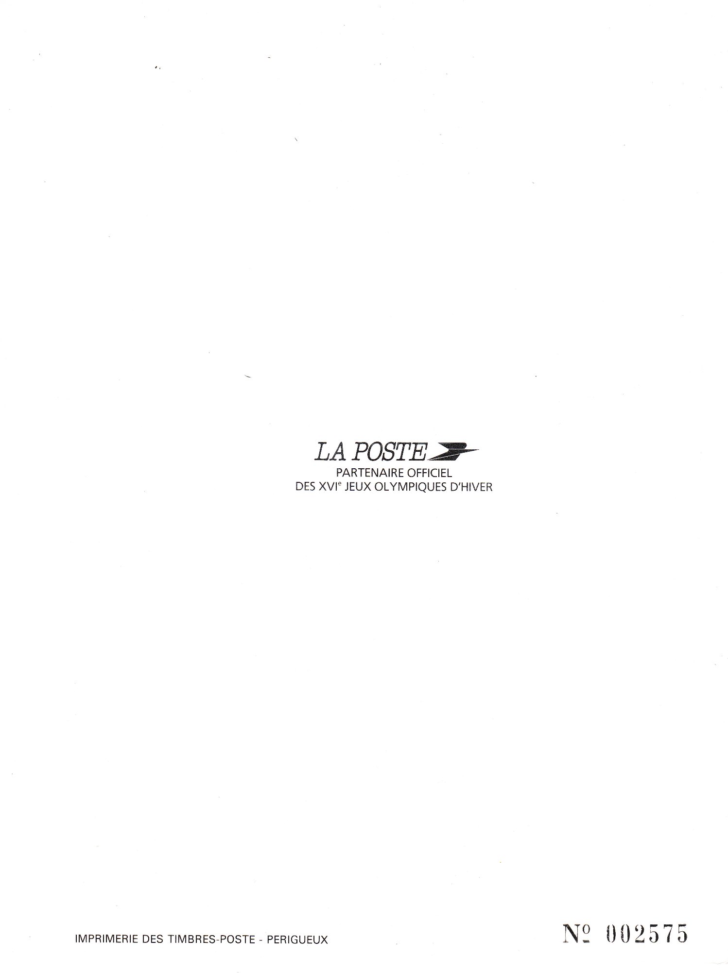 Am 19.01.1991 als Erstausgabetag der Marke mit dem Motiv Slalom bot die französische Post dieses Faltblatt mit einem Viererblock der Marke in einer nummerierten Auflage an. Dieses ist das Exemplar mit der Nummer "002575":