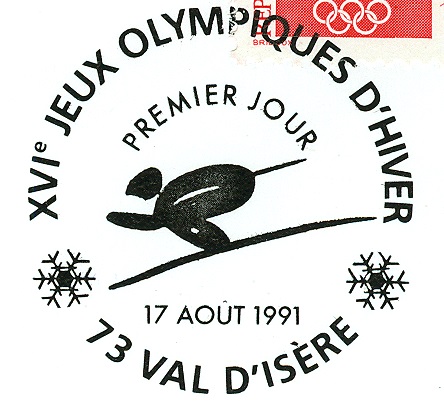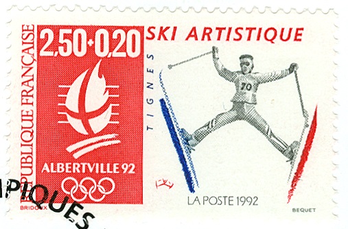 Zu den Winterspielen 1992 erschien in der Zuschlagmarkenserie für die Sporthilfe auch eine Marke zu 170+80Pf (MiNr 1595) mit der Abbildung eines alpinen Skifahrers beim Slalom der Herren.