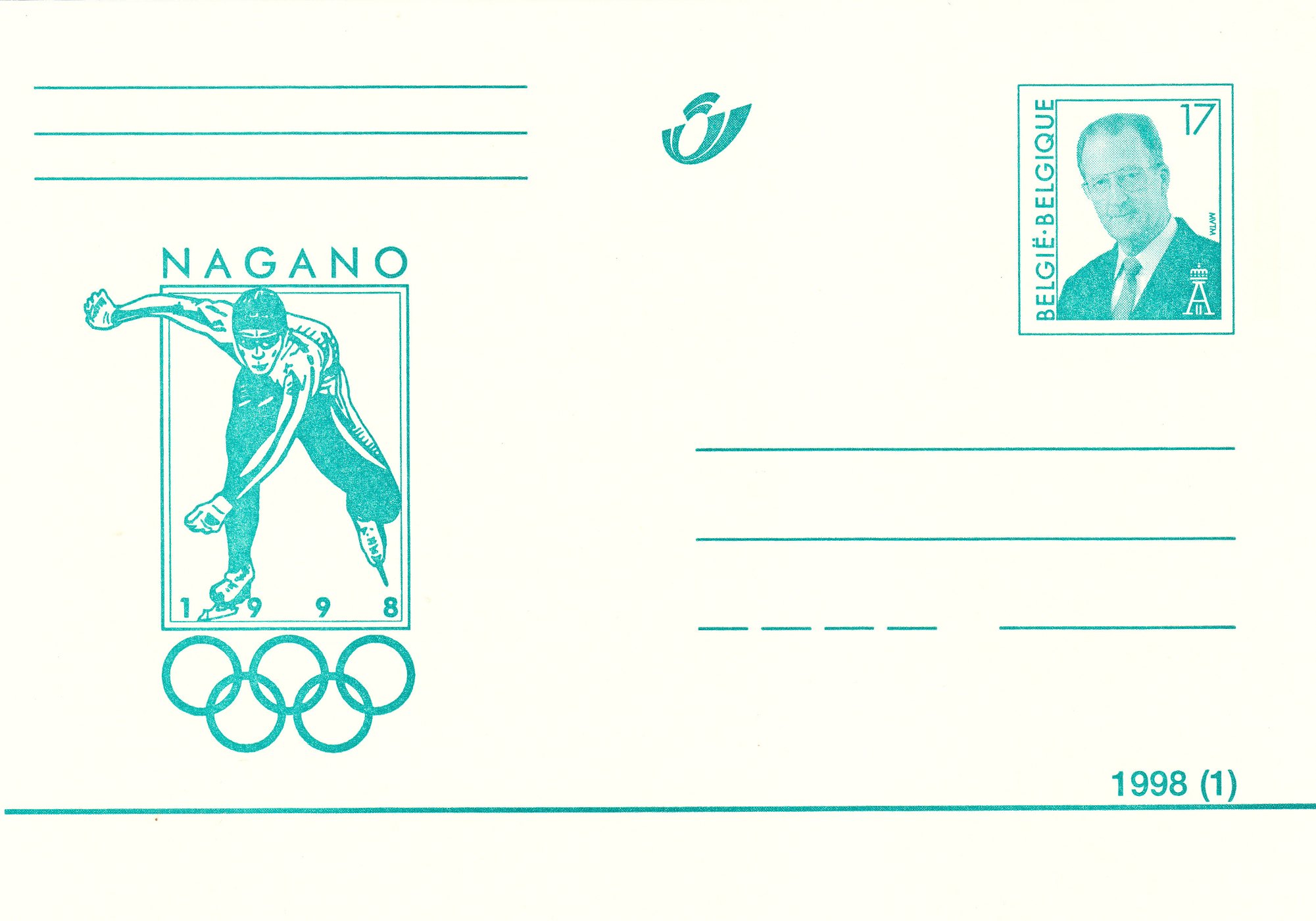 Diese zur Winterolympiade 1998 in Nagano in Belgien erschienene Ganzsache zeigt als Motiv die Wintersportart Eisschnellauf: